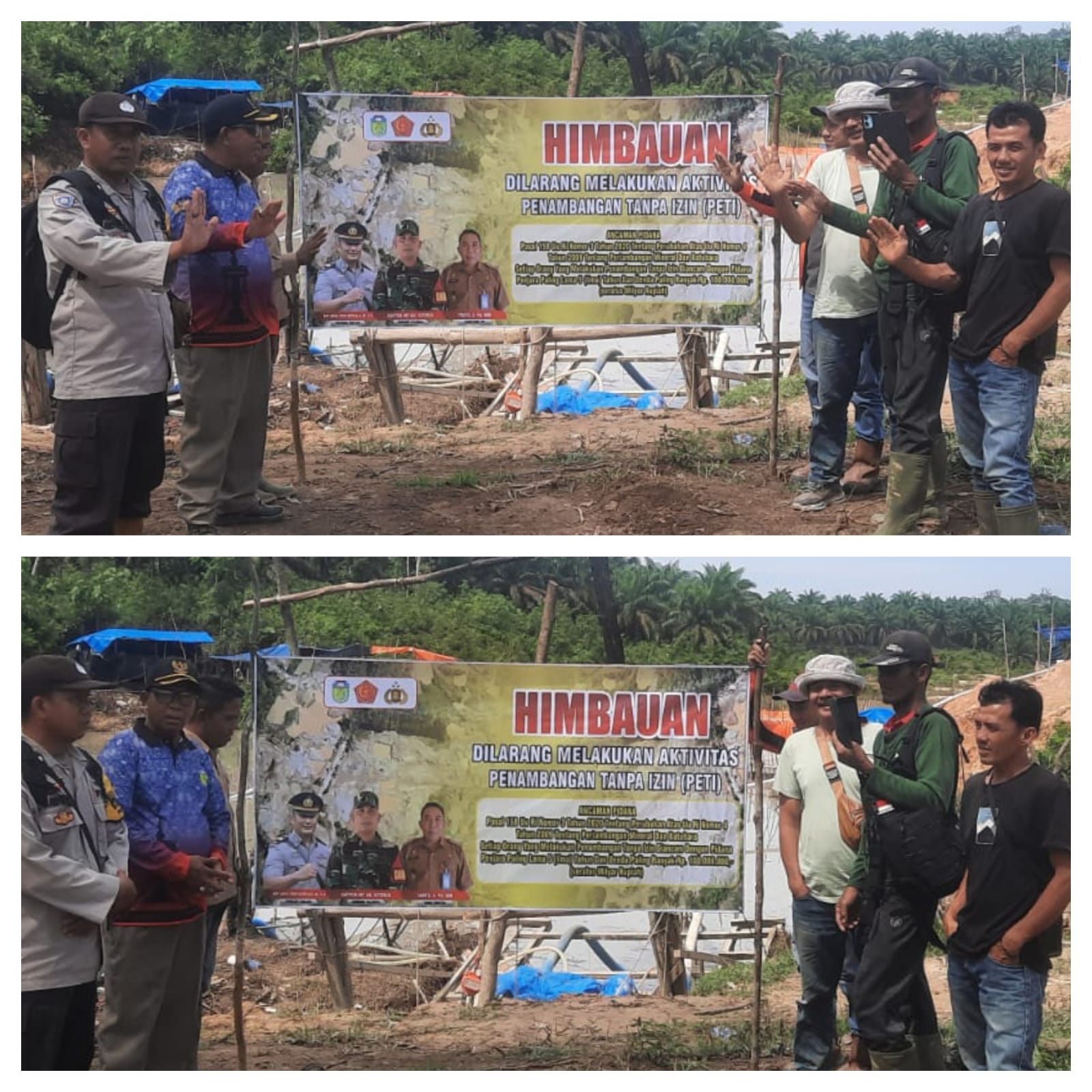 Pemasangan spanduk himbauan dilakukan di sejumlah titik lokasi yang diduga menjadi area aktivitas dompeng atau PETI, sebagai bentuk upaya pencegahan dan edukasi kepada masyarakat.