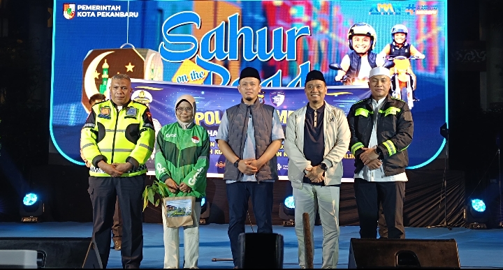 Pekanbaru – Direktorat Lalu Lintas Polda Riau melalui Subdit Kamsel melaksanakan kegiatan Kampanye Keselamatan Lalu Lintas dalam rangkaian Sahur On The Road bersama Wali Kota Pekanbaru dan ribuan pengemudi ojek online, Minggu (1/3/2026) dini hari.
