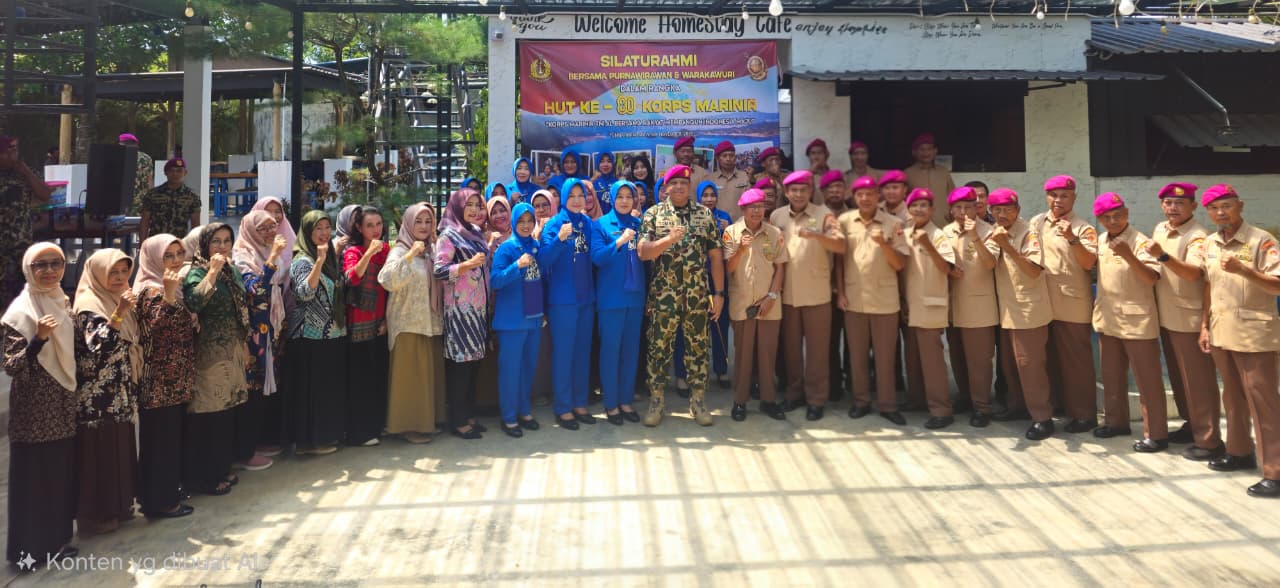 Batam.- Dalam rangka menyambut peringatan HUT ke-80 Korps Marinir, Komandan Batalyon Marinir Pertahanan Pangkalan (Danyonmarhanlan) IV Batam Letkol Marinir Tomas Febrianto, M. Tr. Opsla beserta Ketua Ranting C Cabang 1 Korcab Pasmar 1 Gabungan Jalasenastri Korps Marinir Ny. Ummi Tomas Febrianto dan Pengurus Serta seluruh Prajurit Yonmarhanlan IV Batam. melaksanakan kegiatan Silahturahmi Bersama Purnawirawan dan warakawuri di home stay café Kijang, Bintan. Sabtu (08/11/2025).