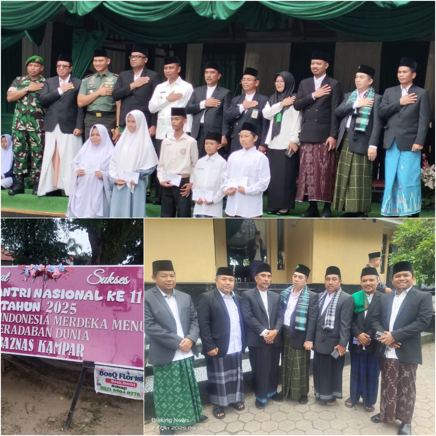 Bangkinang Kota — Suasana Lapangan Pelajar Bangkinang Kota pada Senin pagi (27/10/2025) tampak semarak dan penuh khidmat. Ribuan santri dari berbagai pondok pesantren di Kabupaten Kampar berkumpul untuk memperingati Hari Santri Nasional ke-11 Tahun 2025, yang mengusung tema “Mengawal Indonesia Merdeka Menuju Peradaban Dunia.”