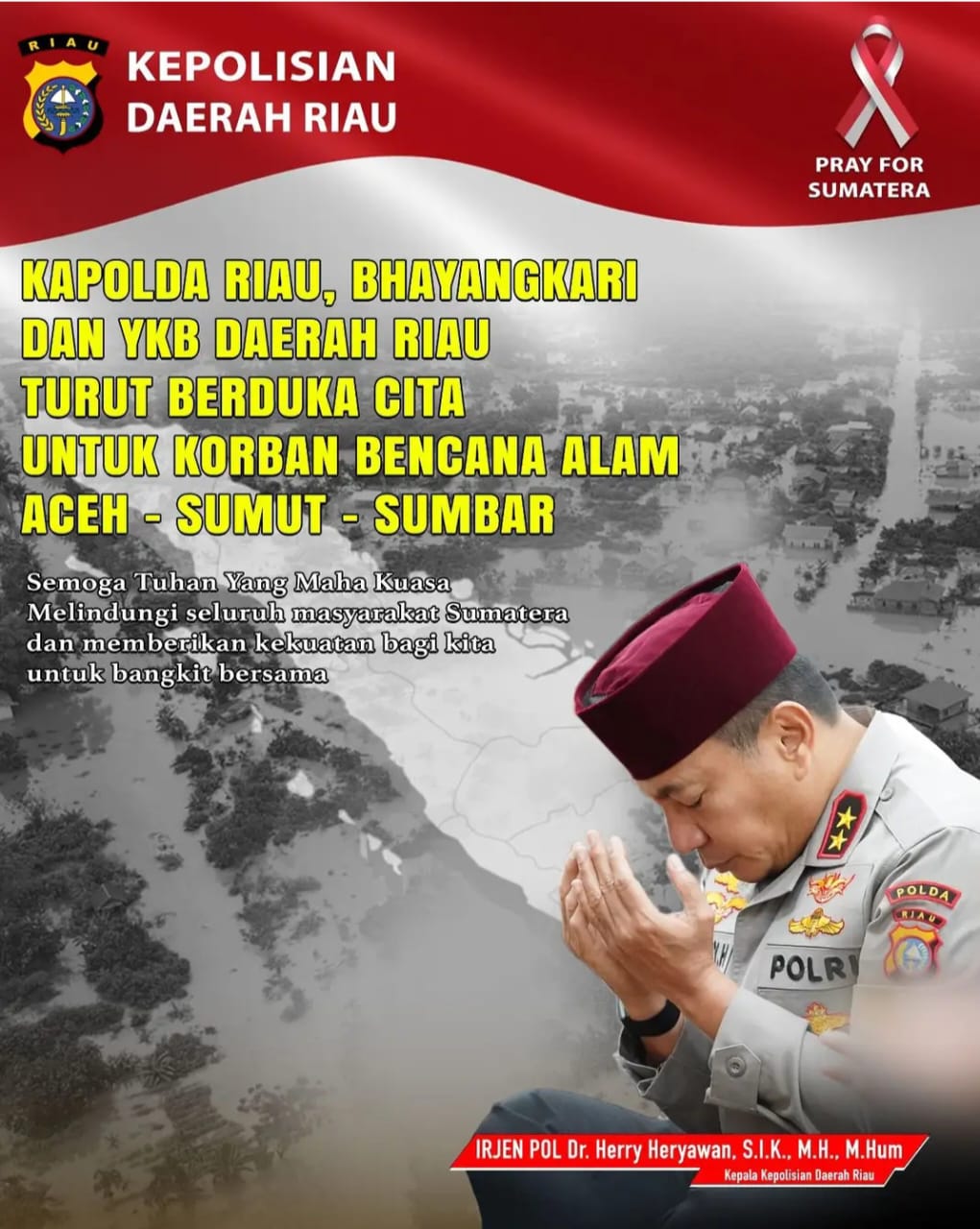Dalam penutup pernyataannya, Irjen Pol Herry Heryawan berharap agar Tuhan Yang Maha Kuasa melindungi seluruh masyarakat di Sumatera dan memberikan kekuatan kepada kita semua untuk bangkit bersama dari musibah ini. Ia menegaskan bahwa semangat kebersamaan dan keikhlasan dalam membantu sesama adalah kunci utama dalam menghadapi cobaan yang berat ini. (Sumber Hms Polda Riau)