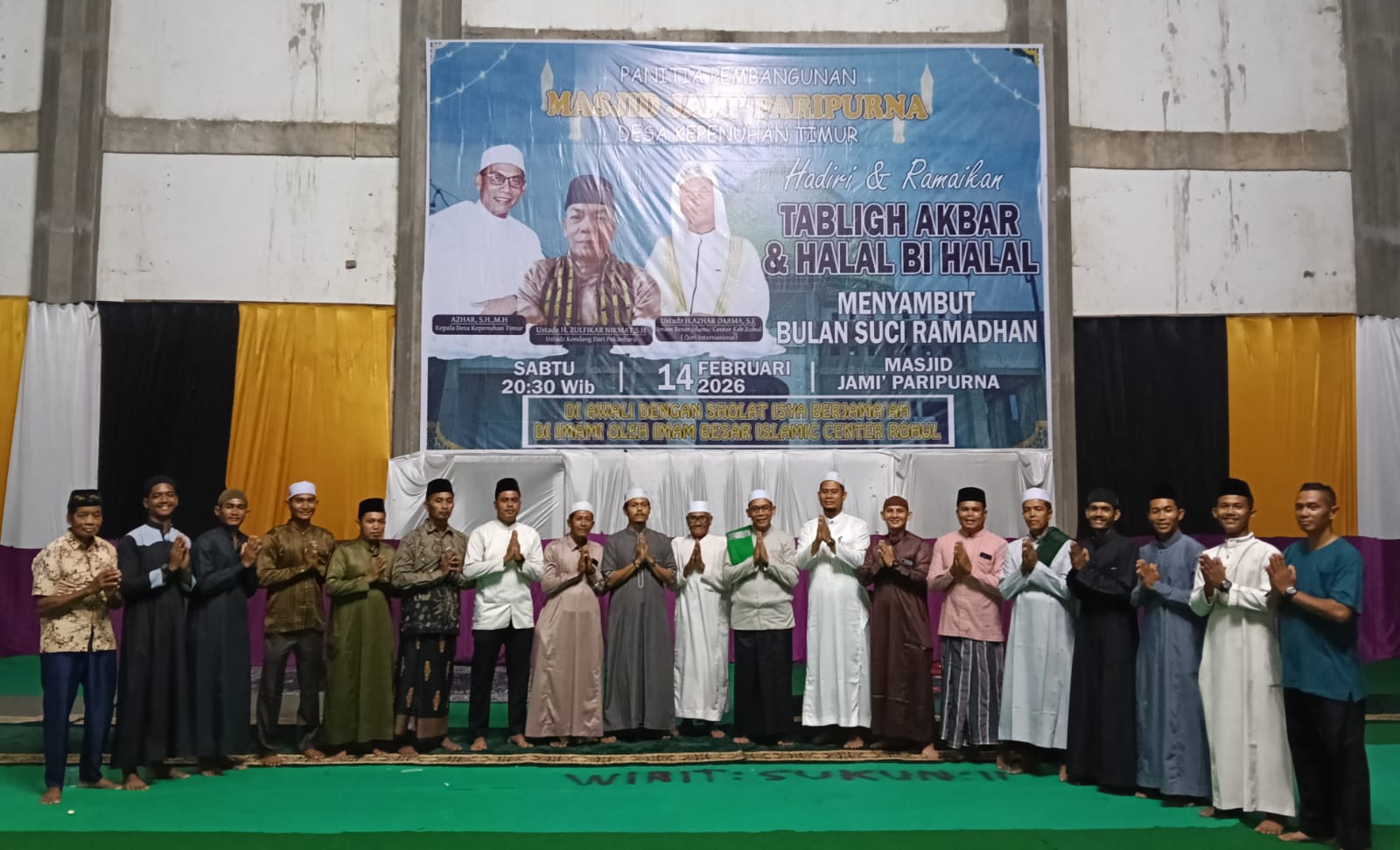 Acara menghadirkan penceramah Almarhum Ustadz H. Zulfikar Nikmat, SH yang sengaja diundang dari Pekanbaru. Sementara pembacaan Gema Wahyu Ilahi disampaikan oleh Imam Besar Masjid Islamic Center Kabupaten Rokan Hulu, Ustadz H. Azhar Darma, SE. Selain itu, beliau juga memimpin salat Magrib dan Isya berjemaah di Masjid Jami’ Paripurna Desa Kepenuhan Timur, yang sekaligus menjadi salat berjemaah perdana di masjid tersebut.