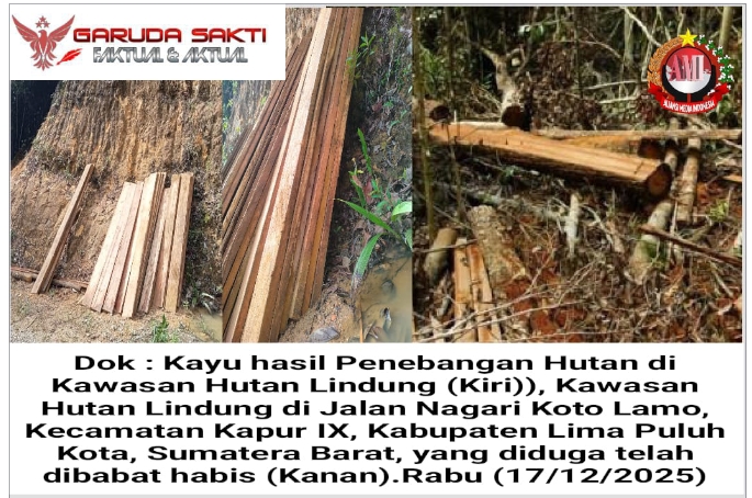 Koto Lamo, Lima Puluh Kota — Kawasan Hutan Lindung yang berada di sepanjang Jalan Nagari Koto Lamo, Kecamatan Kapur IX, Kabupaten Lima Puluh Kota, Sumatera Barat, diduga mengalami kerusakan parah akibat aktivitas penebangan. Hutan yang selama ini berfungsi sebagai benteng alami penahan longsor dan banjir itu kini dilaporkan berubah menjadi lahan terbuka.