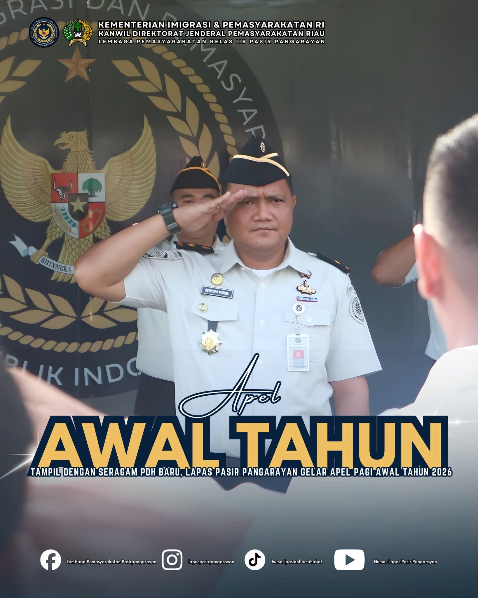 Apel pagi awal tahun tersebut dipimpin langsung oleh Kepala Lapas Kelas IIB Pasir Pangarayan, Efendi Parlindungan Purba, dan diikuti oleh jajaran pejabat struktural, staf, serta peserta magang nasional. Kegiatan berlangsung dengan tertib dan khidmat sebagai wujud kesiapan jajaran pemasyarakatan dalam mengawali pelaksanaan tugas dan fungsi di tahun 2026.