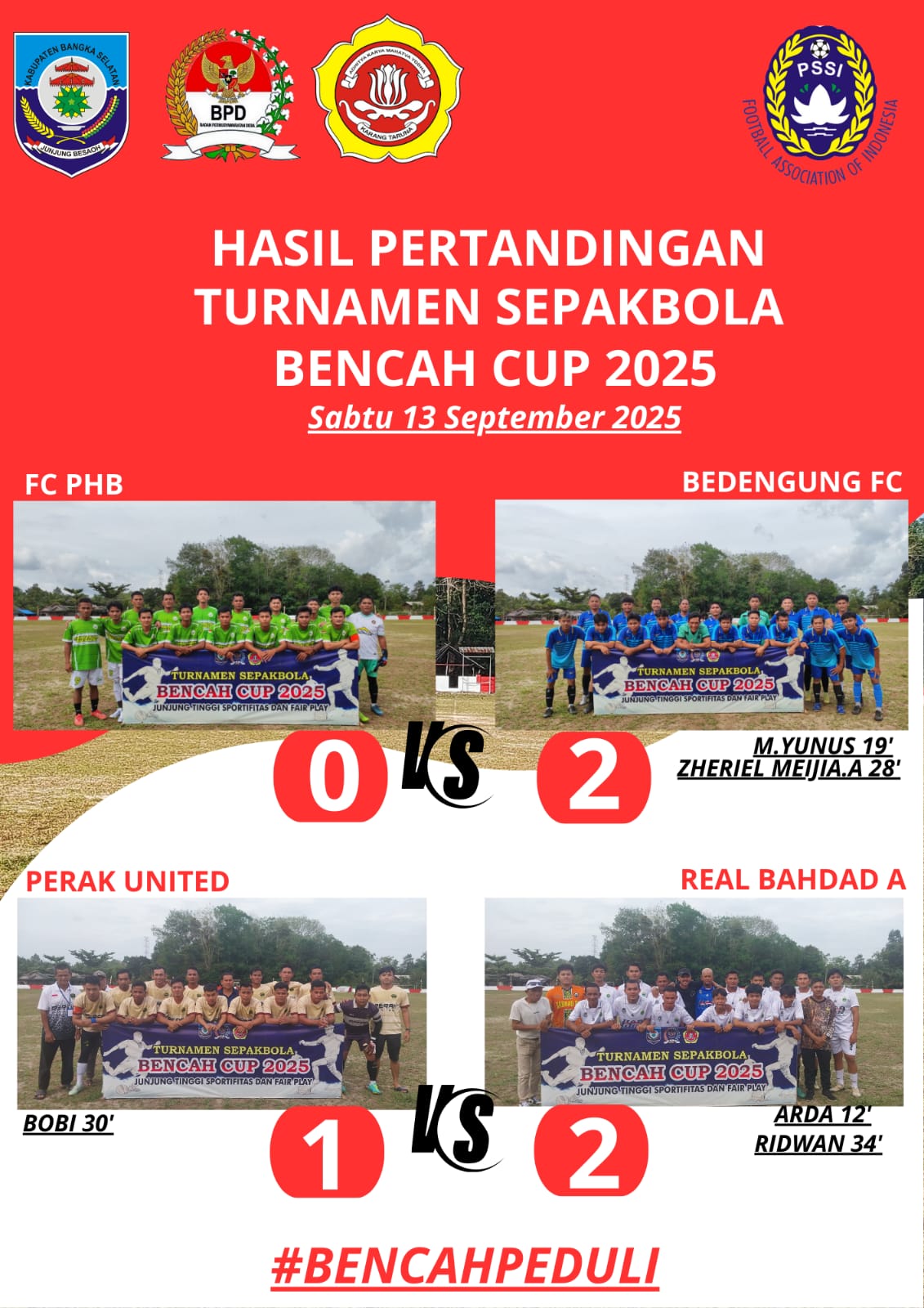 Bencah, Bangka Tengah – Tim sepak bola Perak United, wakil dari Desa Perak (gabungan Permis & Rajik), tampil penuh semangat dalam Turnamen Sepakbola Desa Bencah yang digelar sejak 27 Agustus 2025. Dengan dukungan penuh dari official tim dan sporter setia, Perak United sukses mencatatkan kemenangan meyakinkan di laga awal, menunjukkan kualitas permainan yang solid dan disiplin.