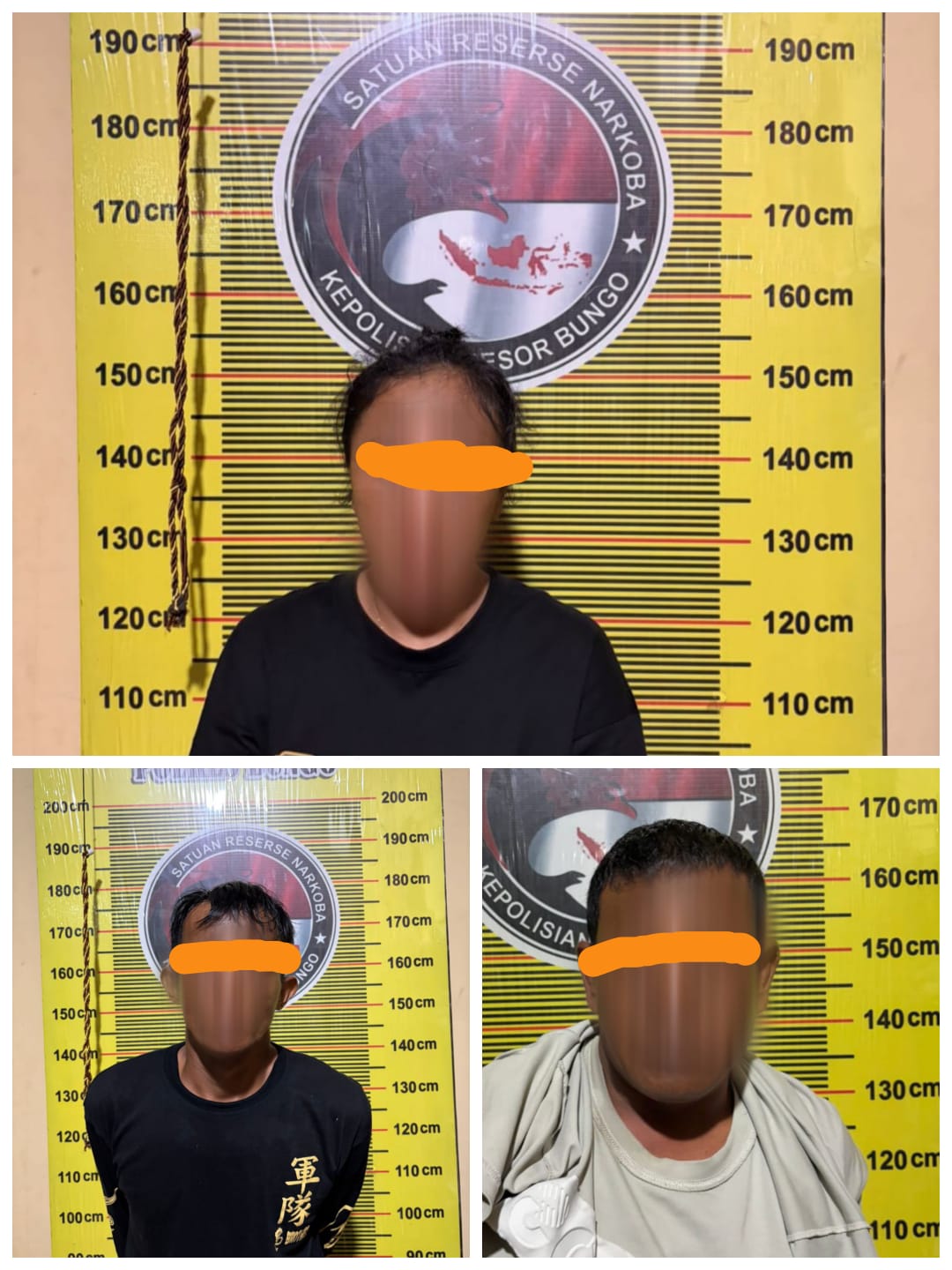 Dalam operasi yang digelar tersebut, petugas mengamankan tiga orang terduga pelaku di sebuah rumah kontrakan di Jalan Mangga, RT.017/RW.001, Kelurahan Lingga Kuamang, Kecamatan Pelepat Ilir, Kabupaten Bungo.