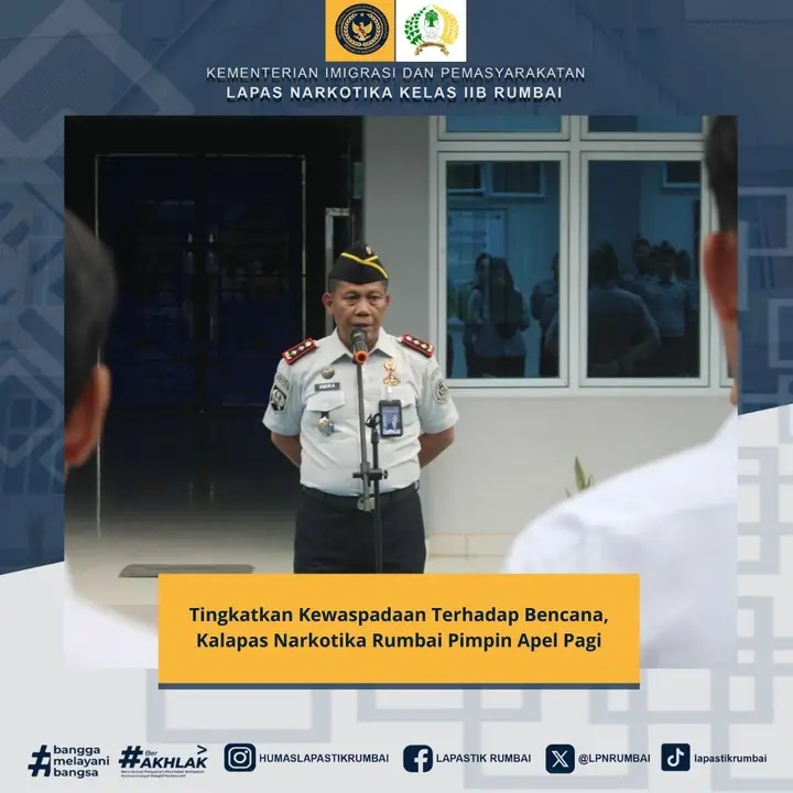 Mengawali arahan di pagi ini Kalapas menyampaikan kepada pegawai dan peserta magang batch II untuk selalu meningkatkan kewaspadaan terhadap bencana.