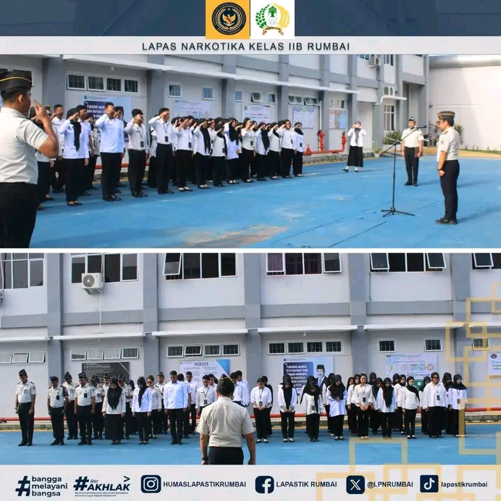 Pekanbaru – Kepala Seksi Administrasi Keamanan dan Ketertiban Lembaga Pemasyarakatan (Kalapas) Narkotika Kelas IIB Rumbai, Edoward Nikelini Bangun bertindak sebagai pembina yang ikut serta didalamnya pejabat struktural dan dihadiri oleh seluruh ASN lingkup Kantor Lapas Narkotika Kelas IIB Rumbai, Senin (5/1/2026).