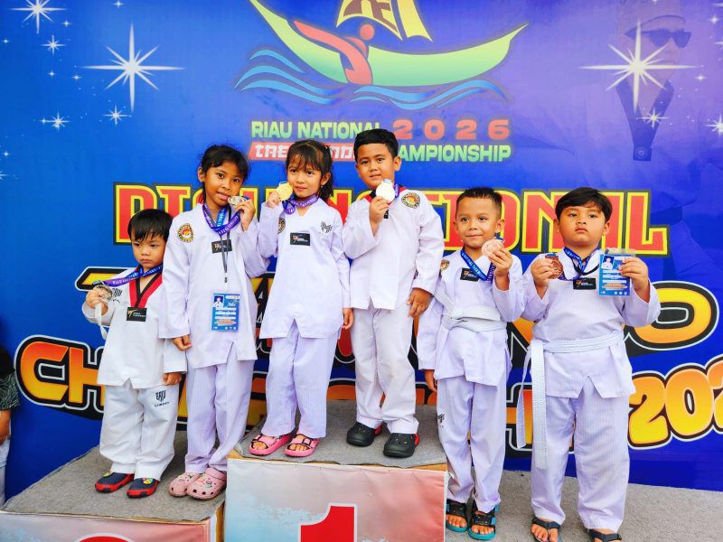 Pekanbaru – Atlet Taekwondo Dojang Polres Kampar menunjukkan performa gemilang di Riau National Taekwondo Championship yang digelar di Gelanggang Olahraga Remaja Pekanbaru pada tanggal 31 Januari – 1 Februari 2026. Selasa (2/02/2026).