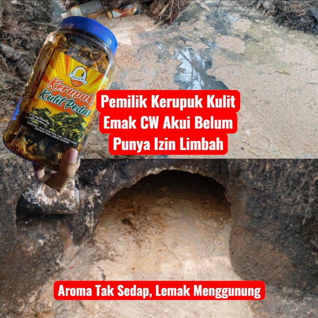 Menurut penuturan warga sekitar, limbah cair dari proses produksi kerupuk kulit patin dan ayam—yang baru dijalankan sekitar satu tahun terakhir—mengalir ke parit belakang rumah warga. Meski pihak usaha mengklaim rutin membersihkan aliran air setiap pagi, kenyataannya hanya beberapa meter dari lokasi produksi yang dibersihkan. Sepanjang aliran parit lainnya justru dipenuhi tumpukan lemak, minyak, dan menimbulkan bau busuk.