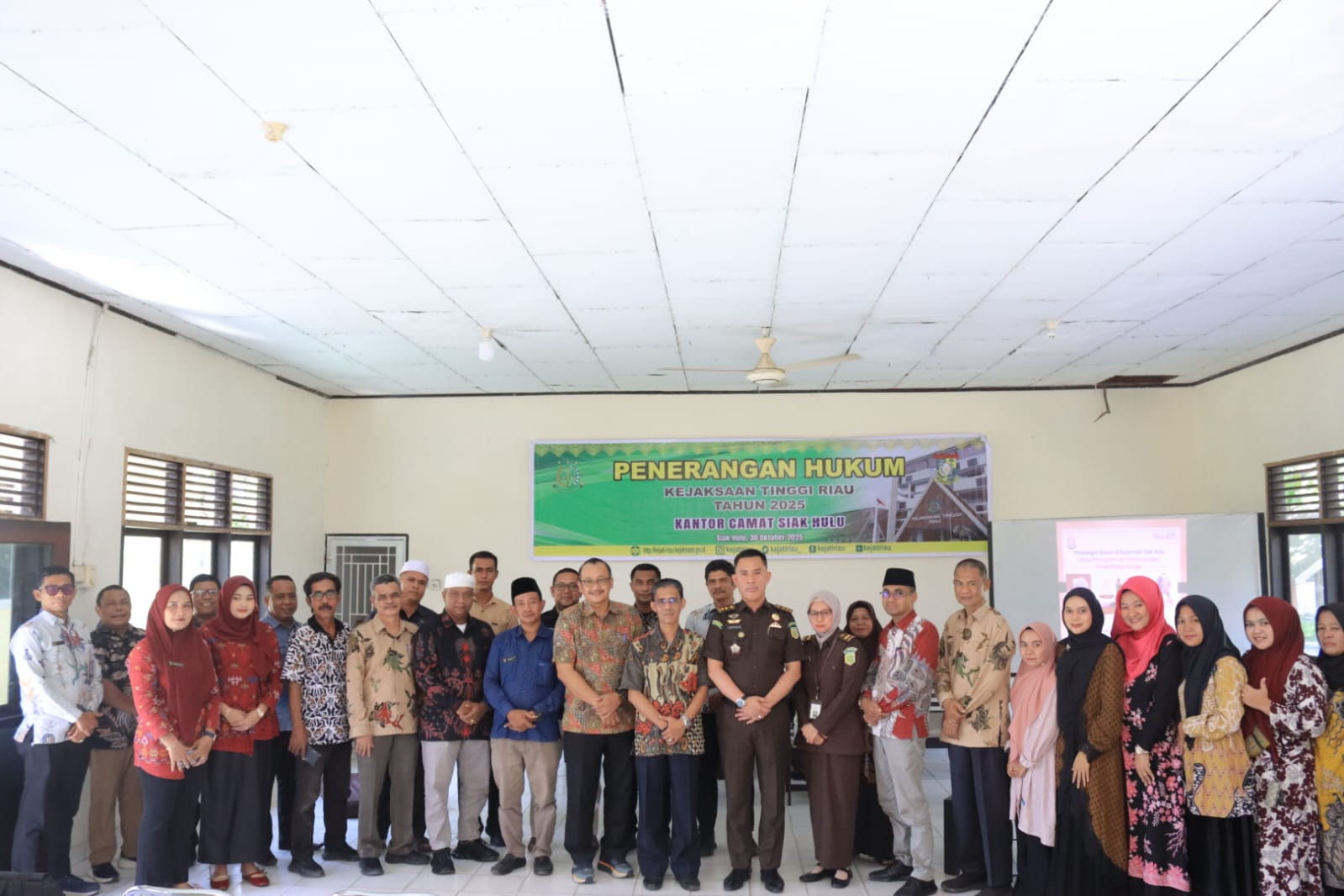 KAMIS, 30 Oktober 2025, Tim Penyuluhan & Penerangan Hukum Bidang Intelijen Kejaksaan Tinggi Riau dipimpin oleh Kepala Seksi (KASI) Penerangan Hukum pada Asisten Intelijen Kejaksaan Tinggi Riau Zikrullah, S. H., M.H melakukan kegiatan penerangan hukum program pembinaan masyarakat taat hukum (BINMATKUM) bertempat di Aula Kantor Camat Siak Hulu, Kecamatan Siak Hulu, Kabupaten Kampar, Provinsi Riau.