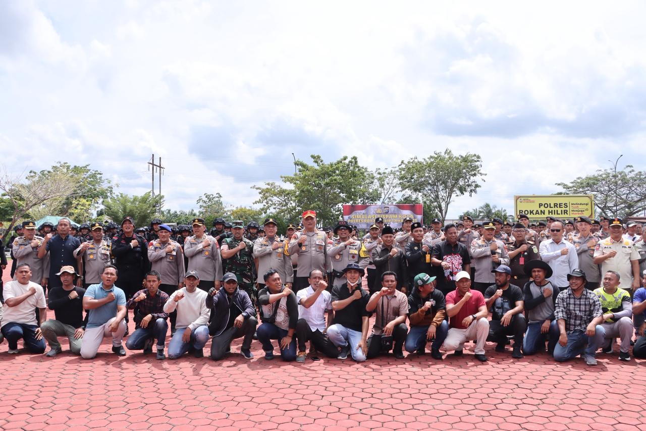 ROKAN HILIR — Polres Rokan Hilir menggelar kegiatan Simulasi Sistem Pengamanan Markas Komando (SISPAM MAKO) dan Sistem Pengamanan Kota (SISPAM KOTA) dalam rangka peningkatan kesiapsiagaan menghadapi potensi gangguan keamanan serta penanganan aksi unjuk rasa. Kegiatan berlangsung pada Rabu, 19 November 2025 sekitar pukul 09.30 WIB di halaman Mapolres Rohil, Jalan Lintas Riau–Sumut Km. 167, Banjar XII, Tanah Putih.