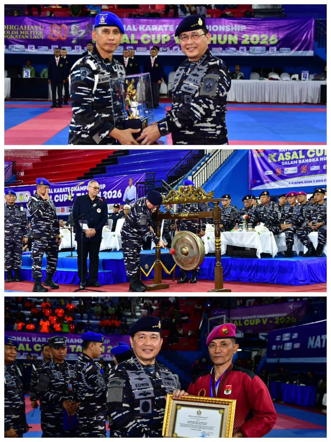 JAKARTA – TNI AL menyelenggarakan Kejuaraan Nasional Karate KASAL CUP V Tahun 2026 dalam rangka memperingati Hari Ulang Tahun (HUT) ke-80 Polisi Militer Angkatan Laut (POMAL). Kegiatan ini menjadi ajang pembinaan prestasi sekaligus penguatan karakter prajurit dan generasi muda, yang secara resmi dibuka oleh Kepala Staf Angkatan Laut (Kasal) Laksamana TNI Dr. Muhammad Ali yang diwakili oleh Wakil Kepala Staf Angkatan Laut (Wakasal) Laksdya TNI Edwin, S.H., M.Han., M.H., di GOR Ciracas, Jakarta Timur, Pada Sabtu (04/04/2026).
