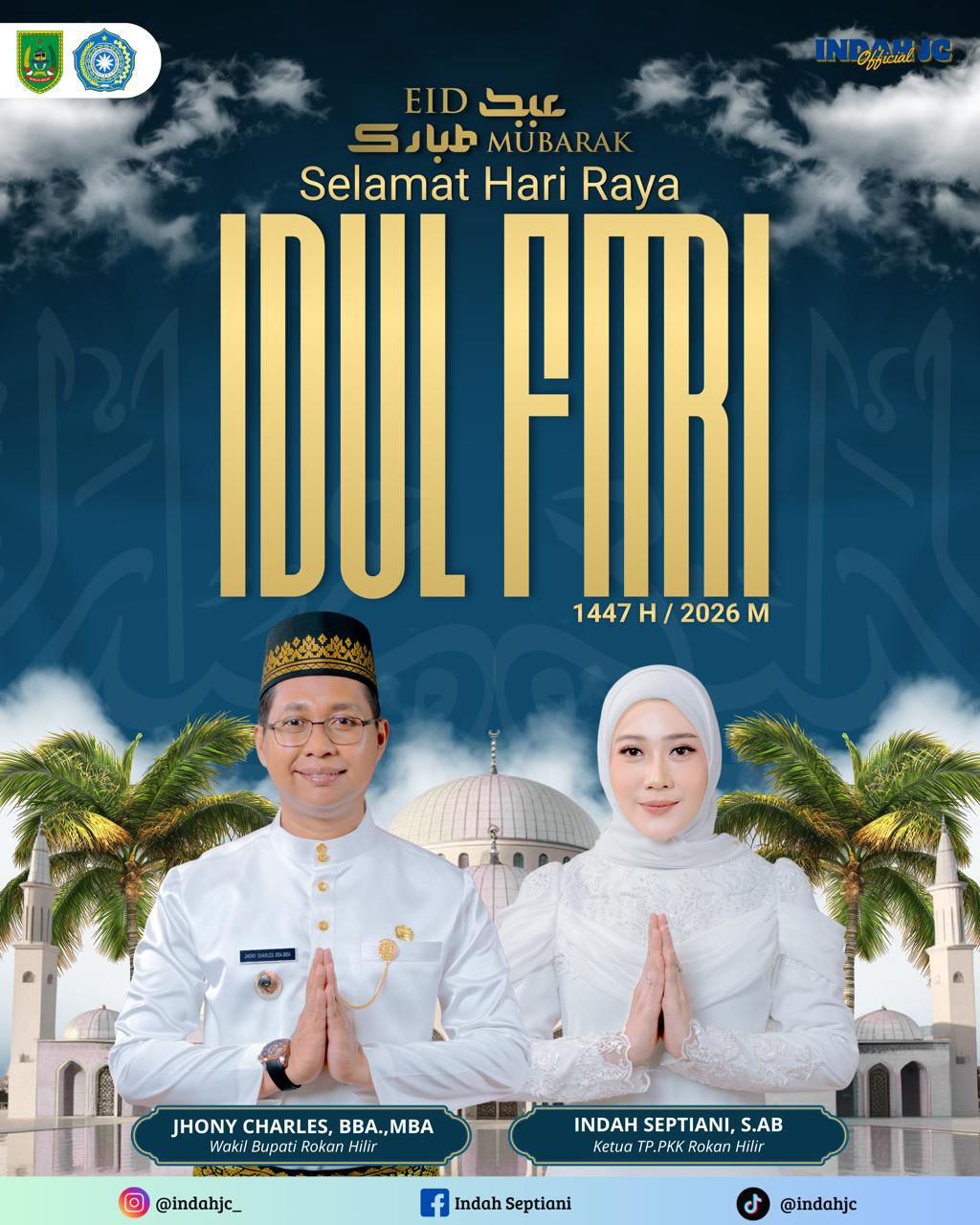 Dalam pernyataannya, Jhony Charles bersama sang istri, Indah Septiani, mengucapkan Selamat Hari Raya Idul Fitri kepada seluruh umat Muslim, khususnya masyarakat Kabupaten Rokan Hilir.