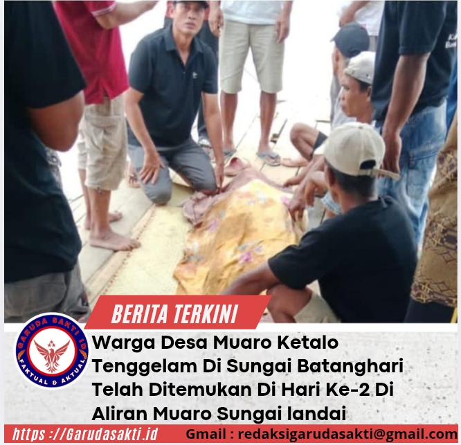 Tebo – Korban tenggelam di aliran sungai batanghari bernama abdul hafis warga desa muaro ketalo, telah ditemukan dihari ke-2 pencarian setelah tenggelamnya di aliran sungai batanghari, tepatnya ditemukan di aliran muaro sungai landai 500 m dari titik lokasi tenggelam. Didusun lingkar Nago, desa muara ketalo, kecamatan tebo ilir, kabupaten tebo, jambi. Pada hari selasa (24/03/2026).