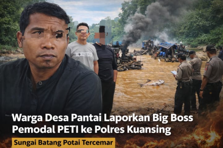 GARUDASAKTI.ID Kuansing – Aktivitas Pertambangan Emas Tanpa Izin (PETI) di Desa Pantai, Kecamatan Kuantan Mudik, Kabupaten Kuantan Singingi (Kuansing), kembali menjadi sorotan. Warga resmi melaporkan dugaan aktivitas tambang ilegal yang mencemari aliran Sungai Batang Potai ke Polres Kuansing pada Jumat (20/2/2026).