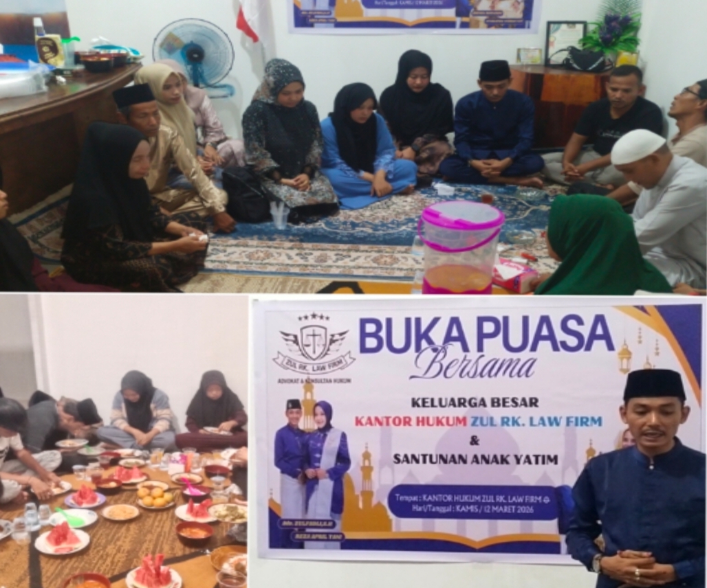 Bangkinang – Suasana penuh kehangatan dan kebersamaan terasa di lingkungan Teratak, Kelurahan Pasir Sialang, Kecamatan Bangkinang, Kamis (11/3/26) pukul 18:33 WIB. Keluarga besar Zul RK Law Firm menggelar kegiatan Buka Puasa Bersama sekaligus Santunan Anak Yatim sebagai bentuk kepedulian sosial di bulan suci Ramadhan 1447 H.